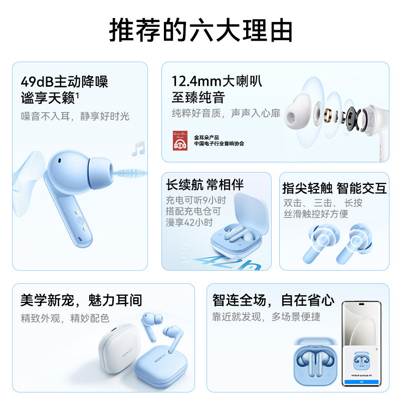 📚 荣耀耳机Earbuds x9蓝牙耳机原装真无线入耳式高音质主动降噪