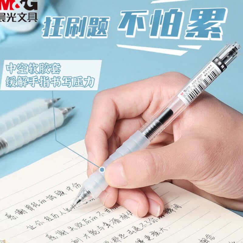 📚 晨光J0601按动中性笔0.5mm舒适云握手学生用刷题笔速干ST头签字笔
