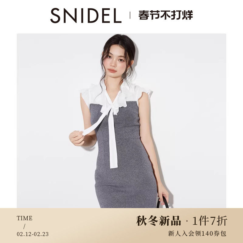 📚 SNIDEL2025秋冬新品气质荷叶领小飞袖领结针织连衣裙SWNO254253