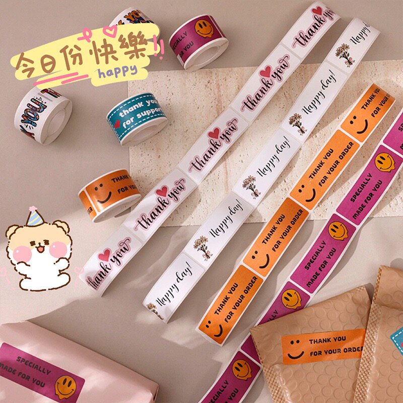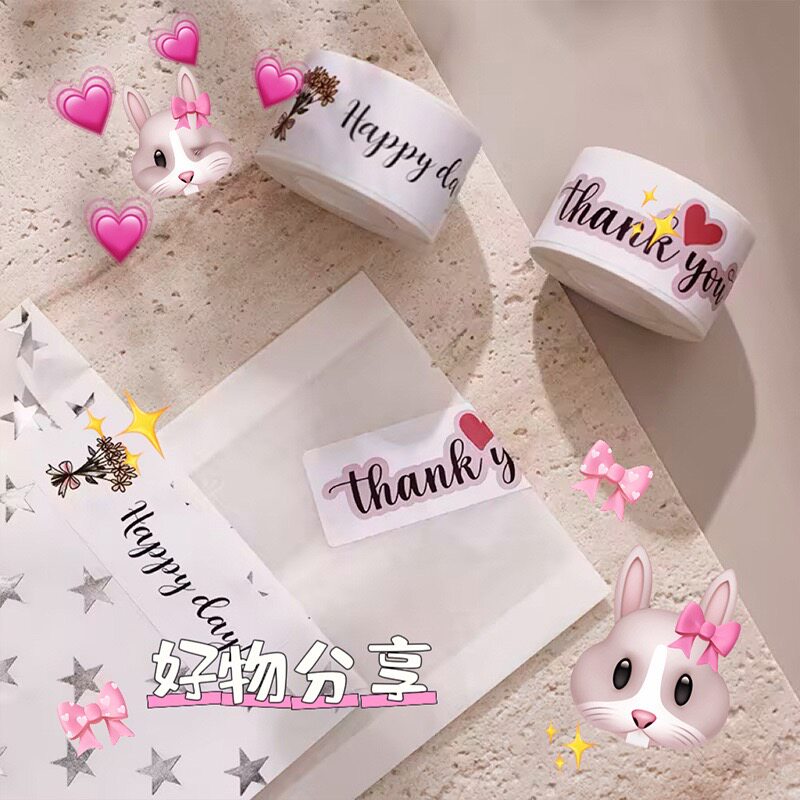 📚 thankyou笑脸长条封口贴飞机盒出卡打包材料感谢贴纸手账装饰标签
