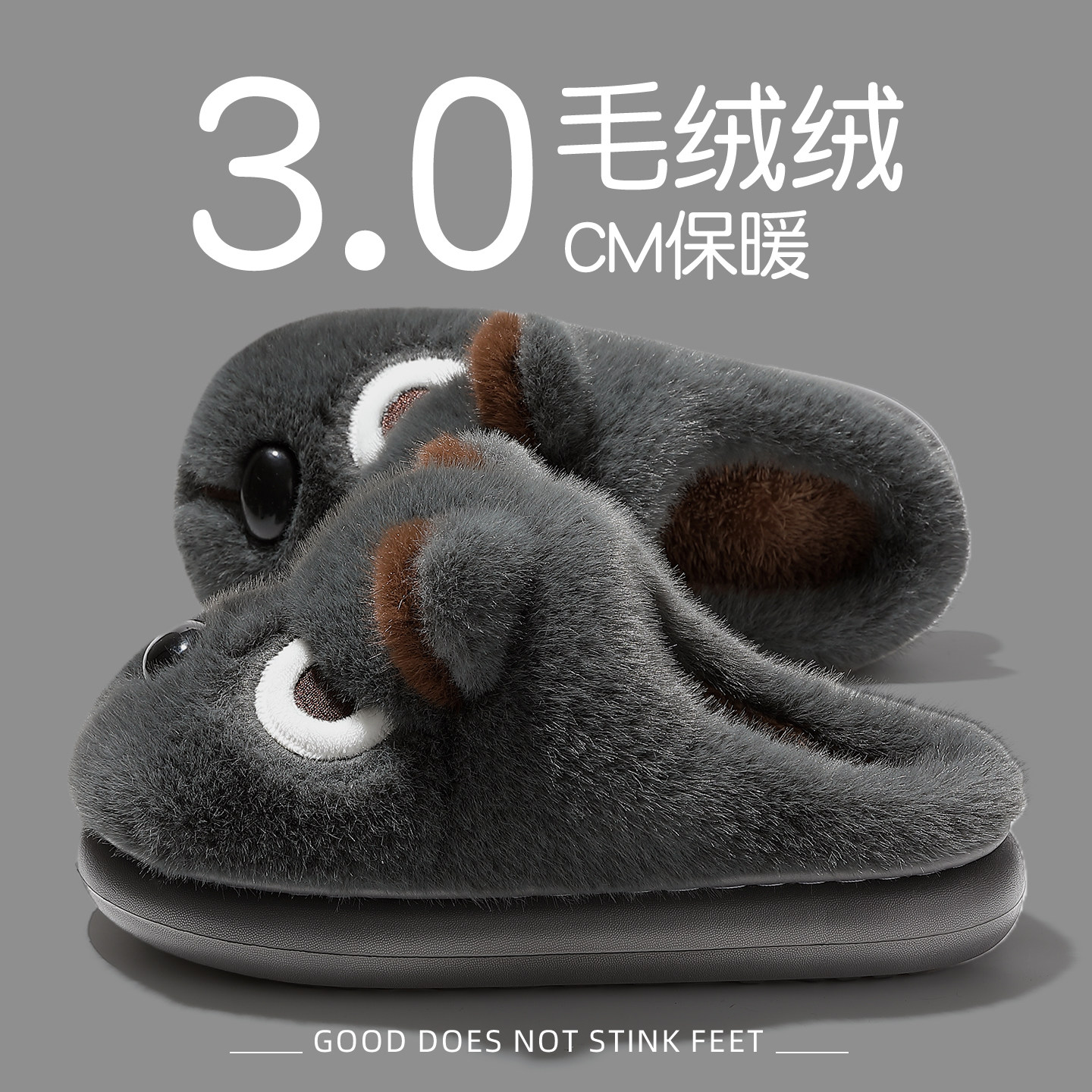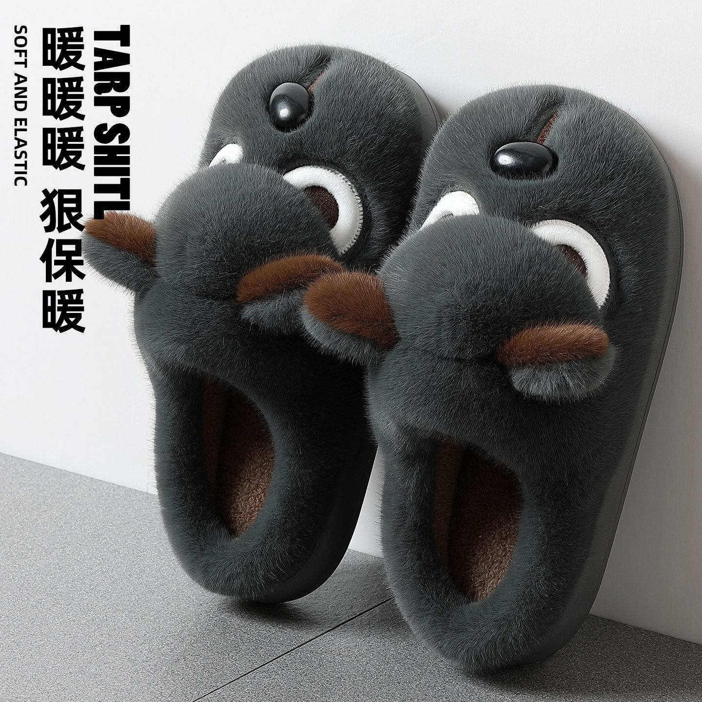 📚 男士棉拖鞋男款冬季2026新款室内家居保暖加绒加厚底毛毛拖鞋卡通