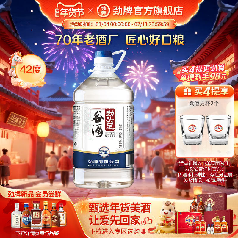 📚 劲牌42度5L劲头足谷酒高度酒水桶装毛铺 劲酒官方旗舰店