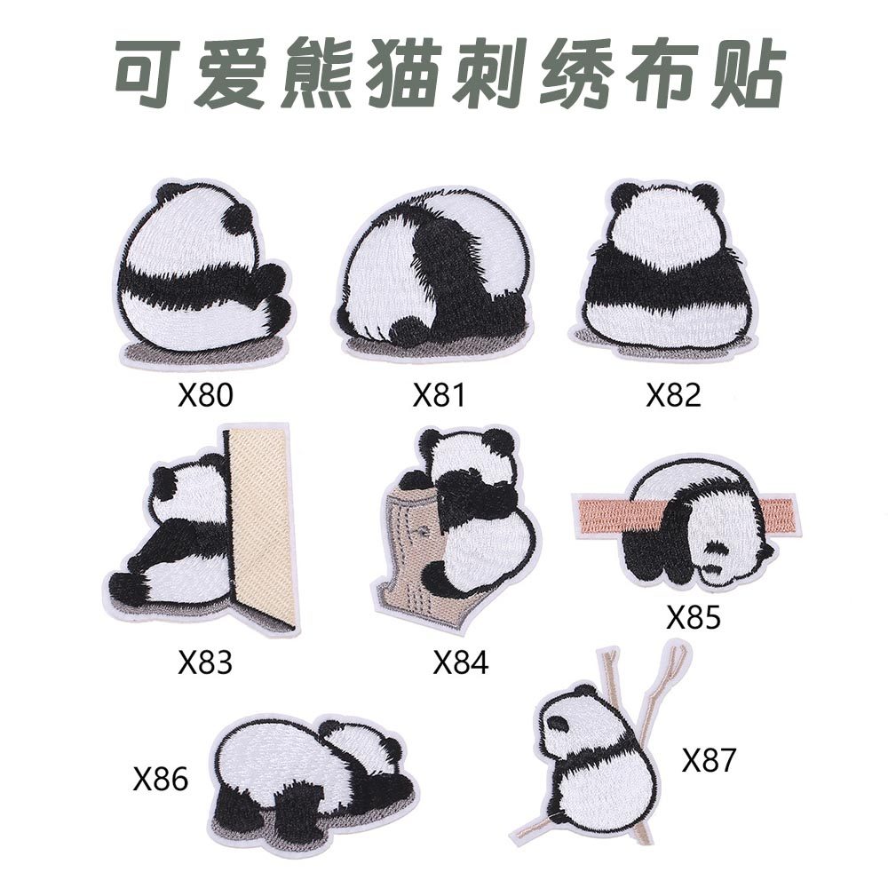 📚 新款卡通熊猫布贴校服衣服鞋子包包装饰修补补丁贴熨烫刺绣羽绒服