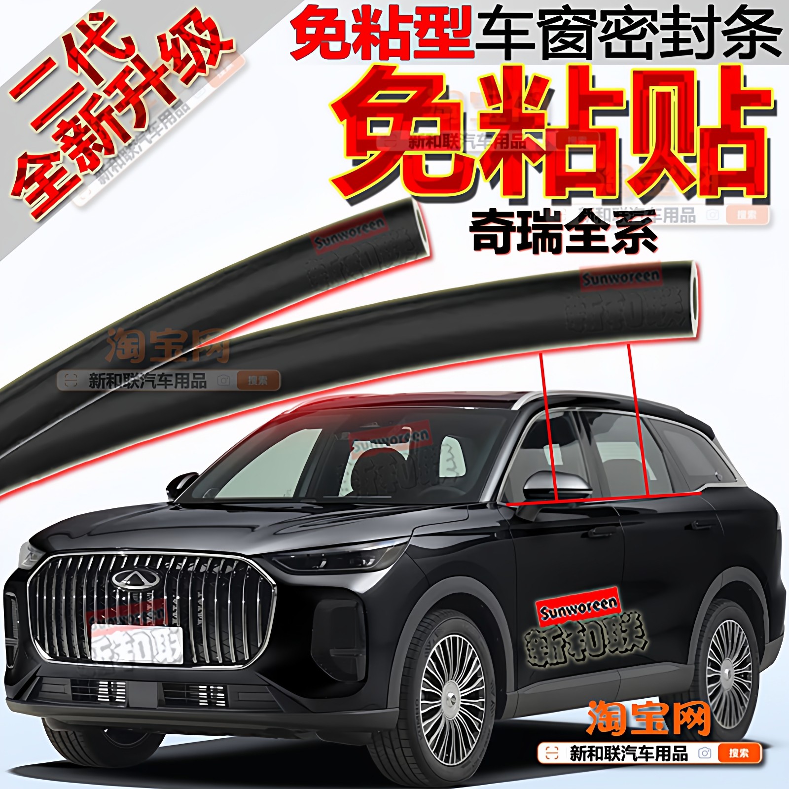 📚 适用奇瑞艾瑞泽8PRO瑞虎79 5X风云T车窗密封条玻璃隔音二代免粘贴