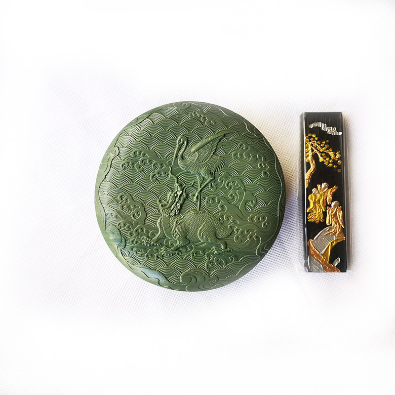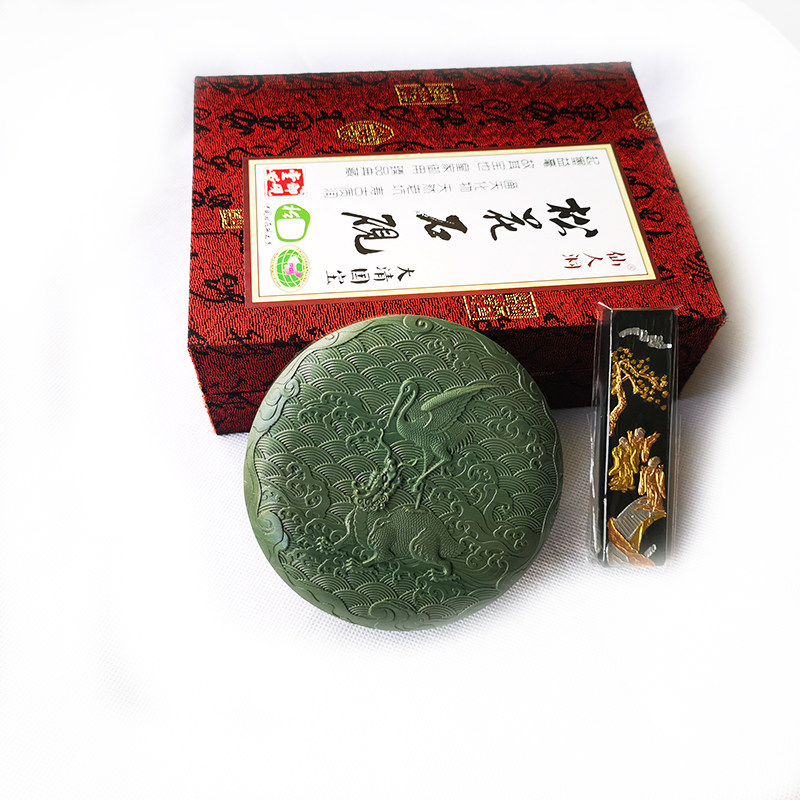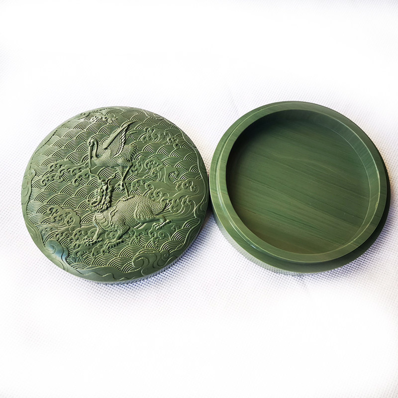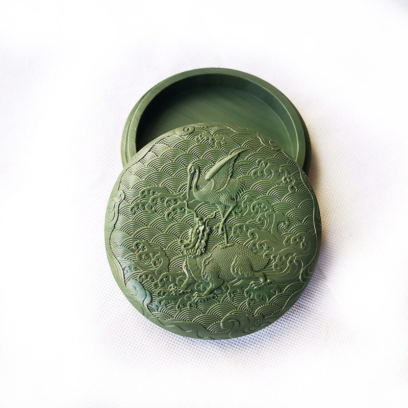 📚 砚台 墨海 松花砚 古典图纹石盒砚 正宗老坑原石雕刻砚台印泥盒
