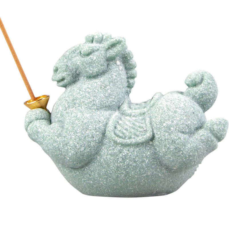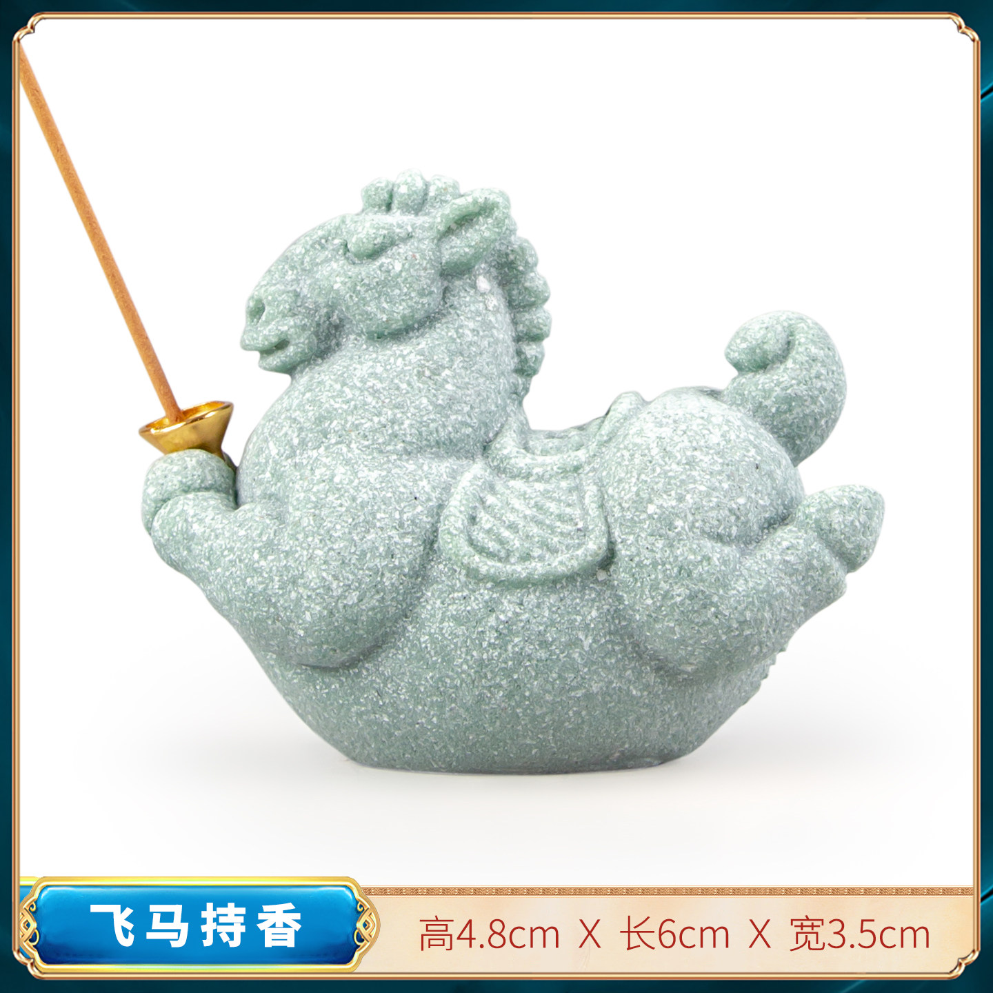 📚 逗兽记国潮青砂石驷马吉祥飞马持香桌面摆件生肖马家居茶室装饰品
