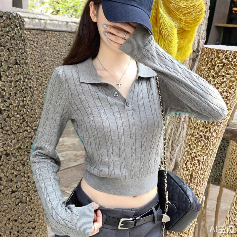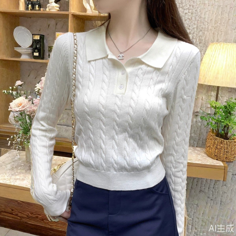 📚 春秋冬季新款巨好看polo领短款毛衣麻花长袖针织打底衫女内搭上衣