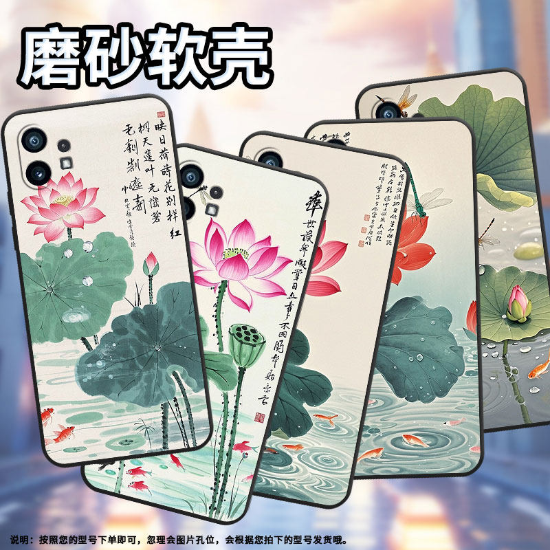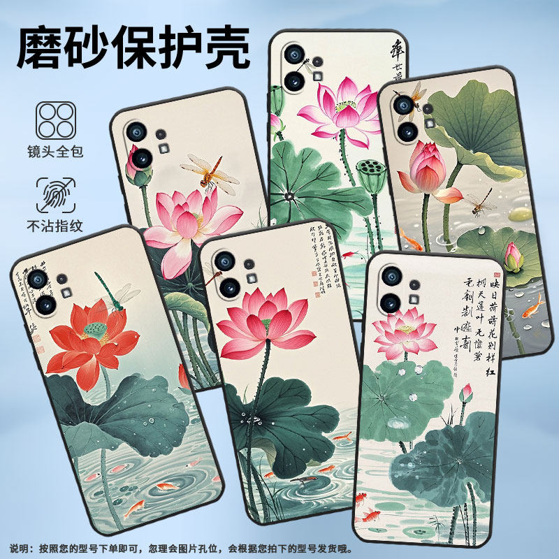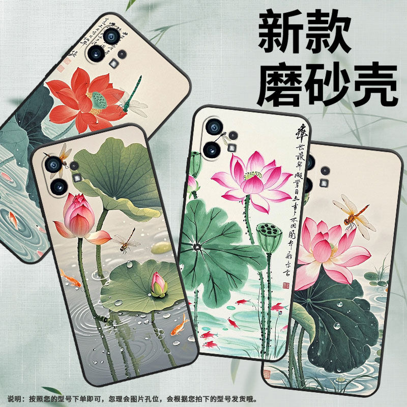📚 适用NothingPhone1手机壳时尚A063高级工作硅胶水墨荷花不掉色软壳NothingPhone1男女款商务防摔保护套