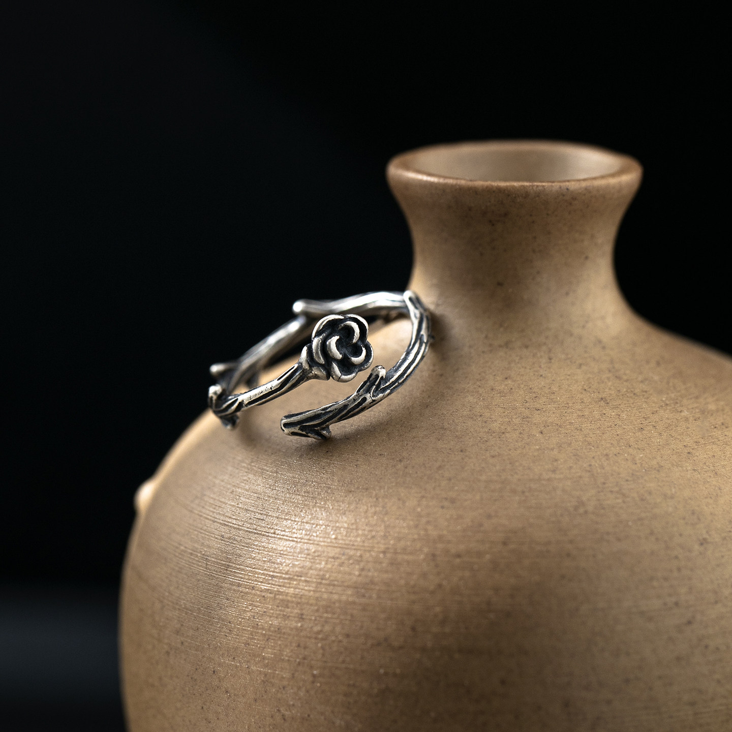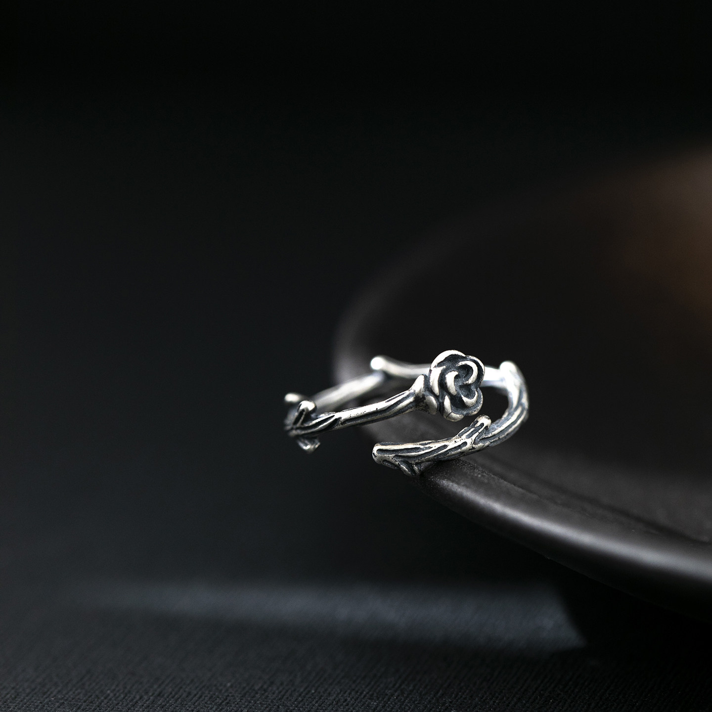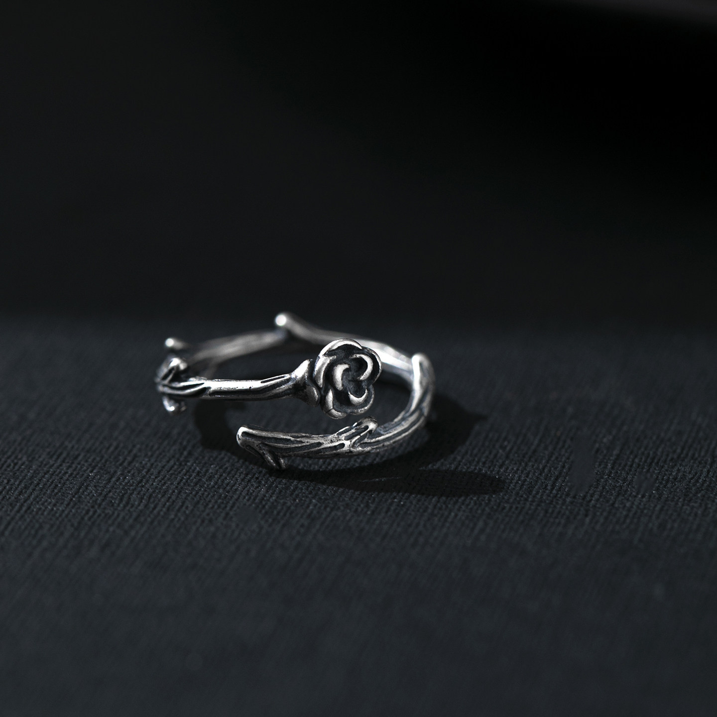 📚 纹砖Veinsbrick《荆棘花》复古做旧花瓣带刺纯银S925开口调节戒指