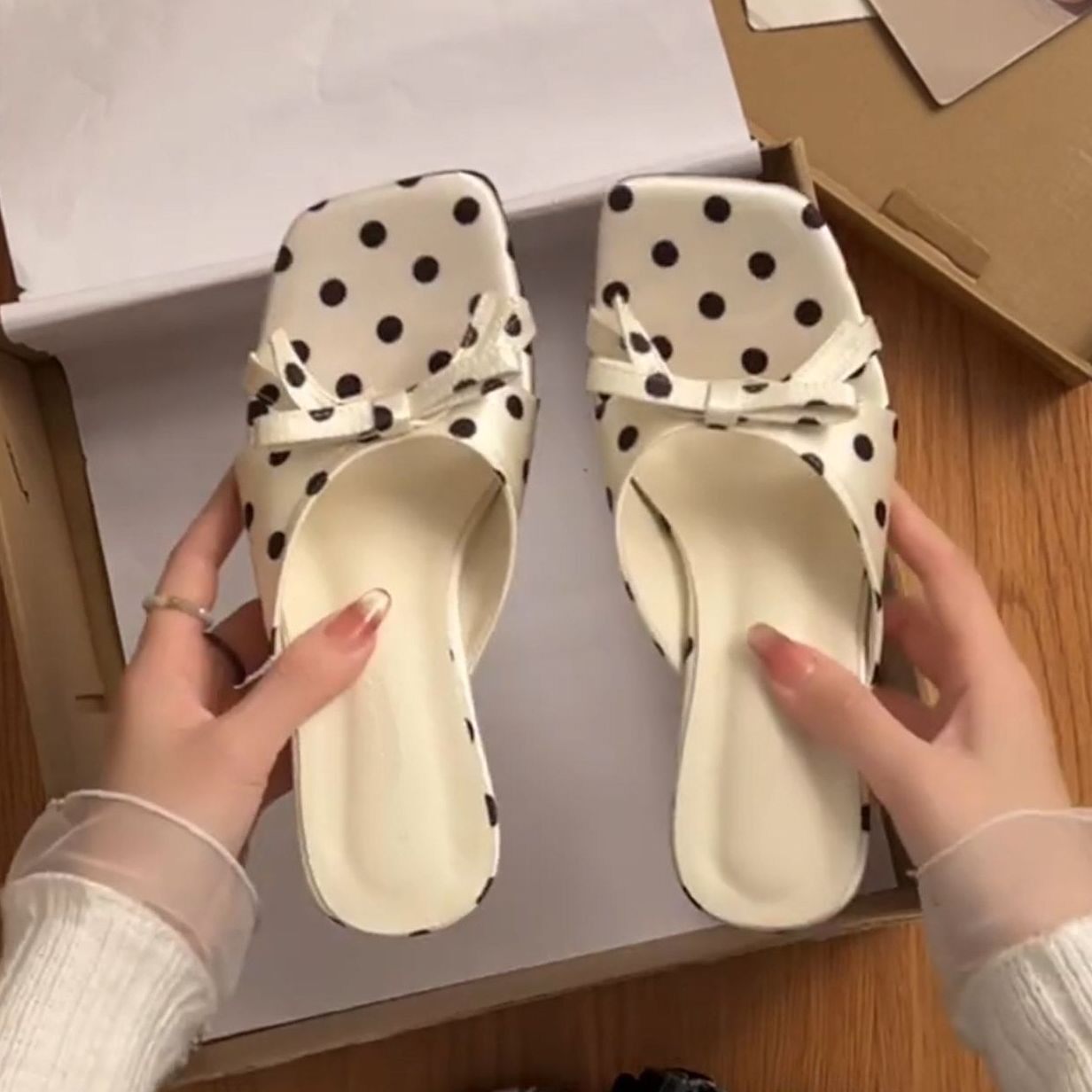 📚 法式风波点蝴蝶结坡跟拖鞋女2026年夏季新款露趾厚底小个子凉拖鞋