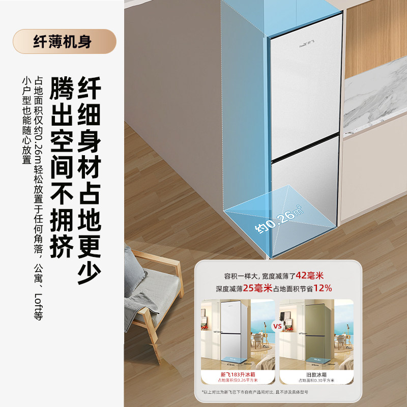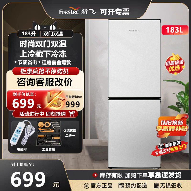 📚 顺丰速发新飞183升双门家用租房超薄冷藏冷冻两门三温节能电冰箱