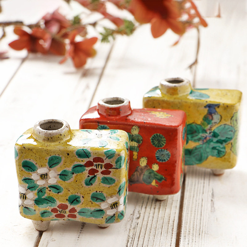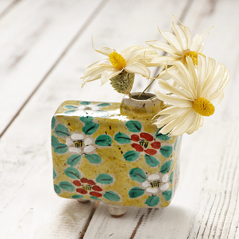 📚 日本进口九谷烧手作小花器 白雅木米风插花器皿茶席书桌摆件装饰