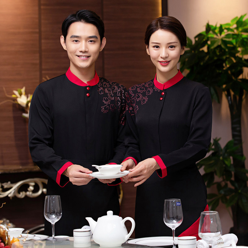 📚 酒店工作服长袖 中餐厅服务员工作服秋冬装 火锅串串饭店前台工装