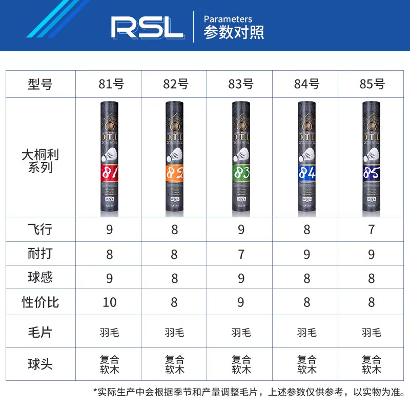 📚 正品RSL亚狮龙大桐利DTL81/82/83/84/85专业耐打训练羽毛球