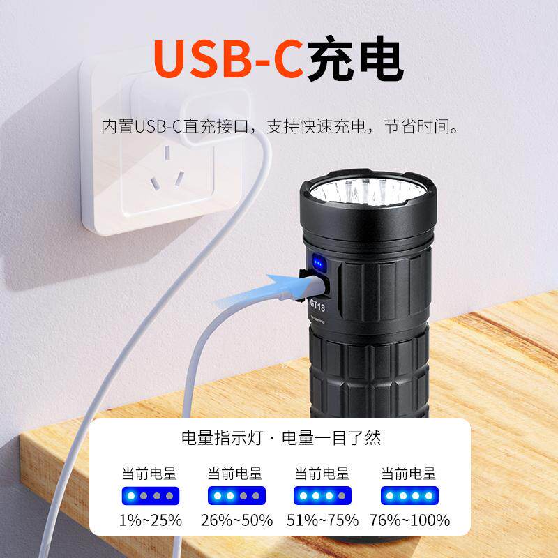 📚 雷明兔GT18手电筒强光 充电手电46950电池超长续航户外移动照明灯