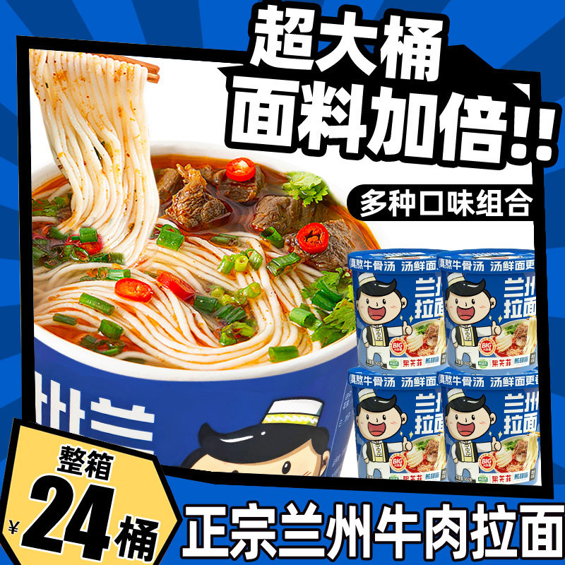📚 【升级加量】兰州牛肉拉面桶装速食非油炸方便面整箱正宗牛肉面食