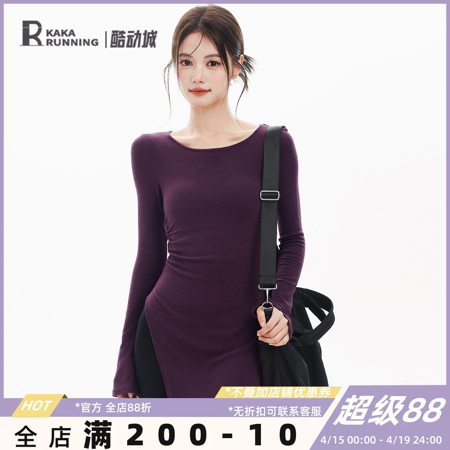 19¥ HU006 COvg5goFcVo¥ https://m.tb.cn/h.io5kZsi 奔跑吧卡卡紫色设计感中长款开叉T恤长袖显瘦瑜伽服上衣运动健身 --------------------- 【原售价】196元 【现售价】79元。