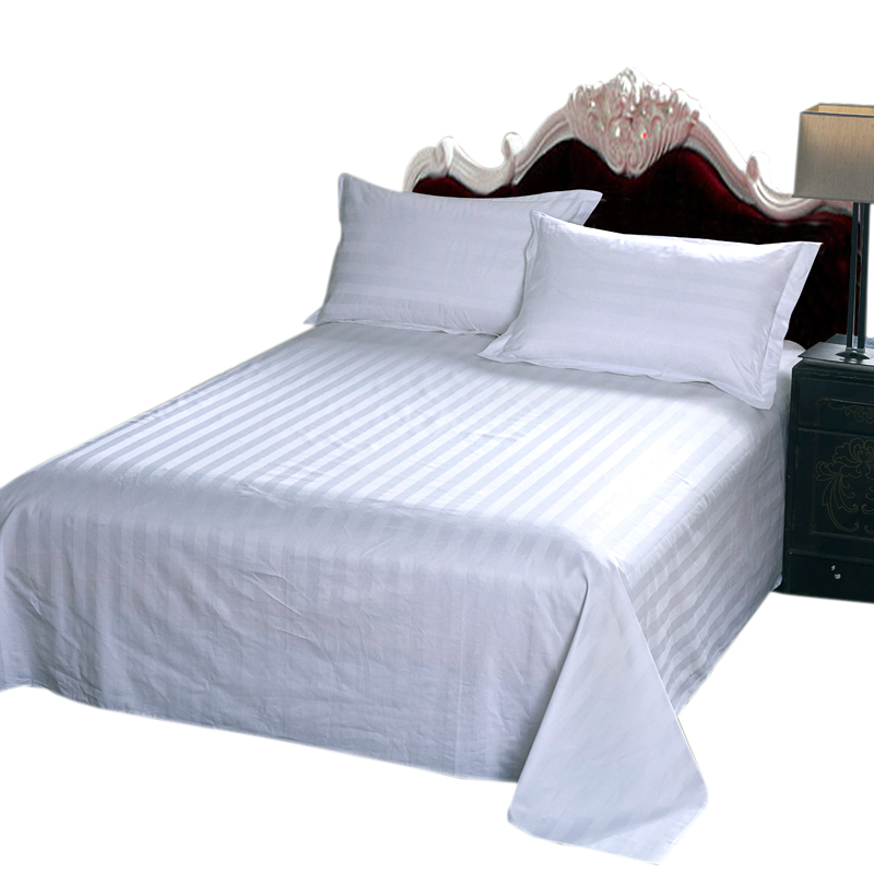 📚 星酒店宾馆专用床上用品布草纯棉白色全棉缎条加密床单床笠床罩