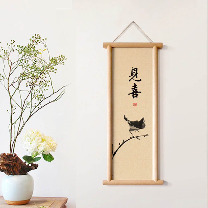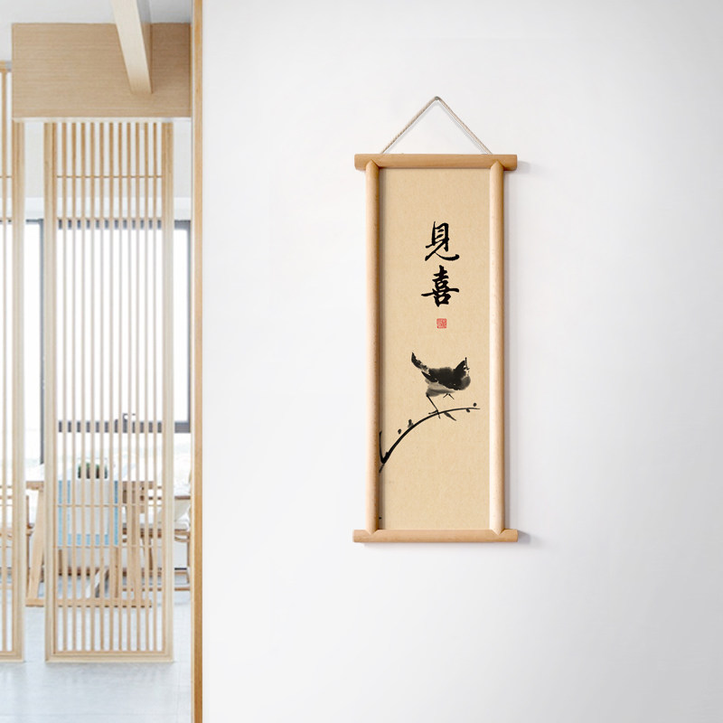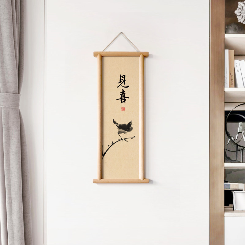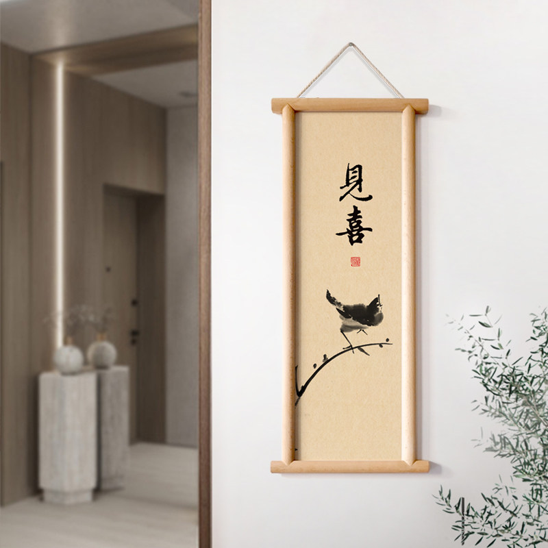 📚 水墨宣言入户玄关墙画开门见喜实木框装饰画喜上眉梢布面挂画喜鹊