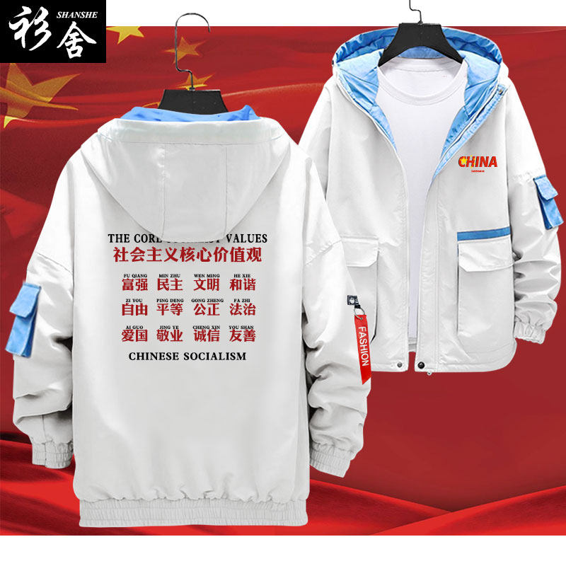 📚 社会主义核心价值观富强民主中国爱国夹克连帽男女外套帽衫上衣服