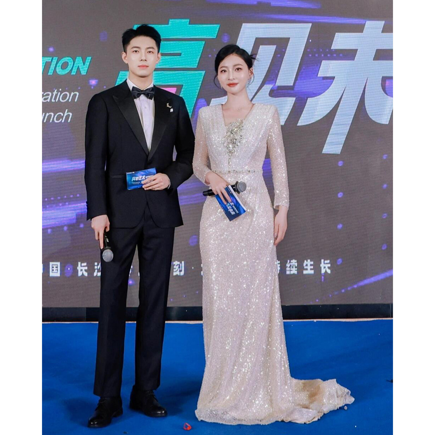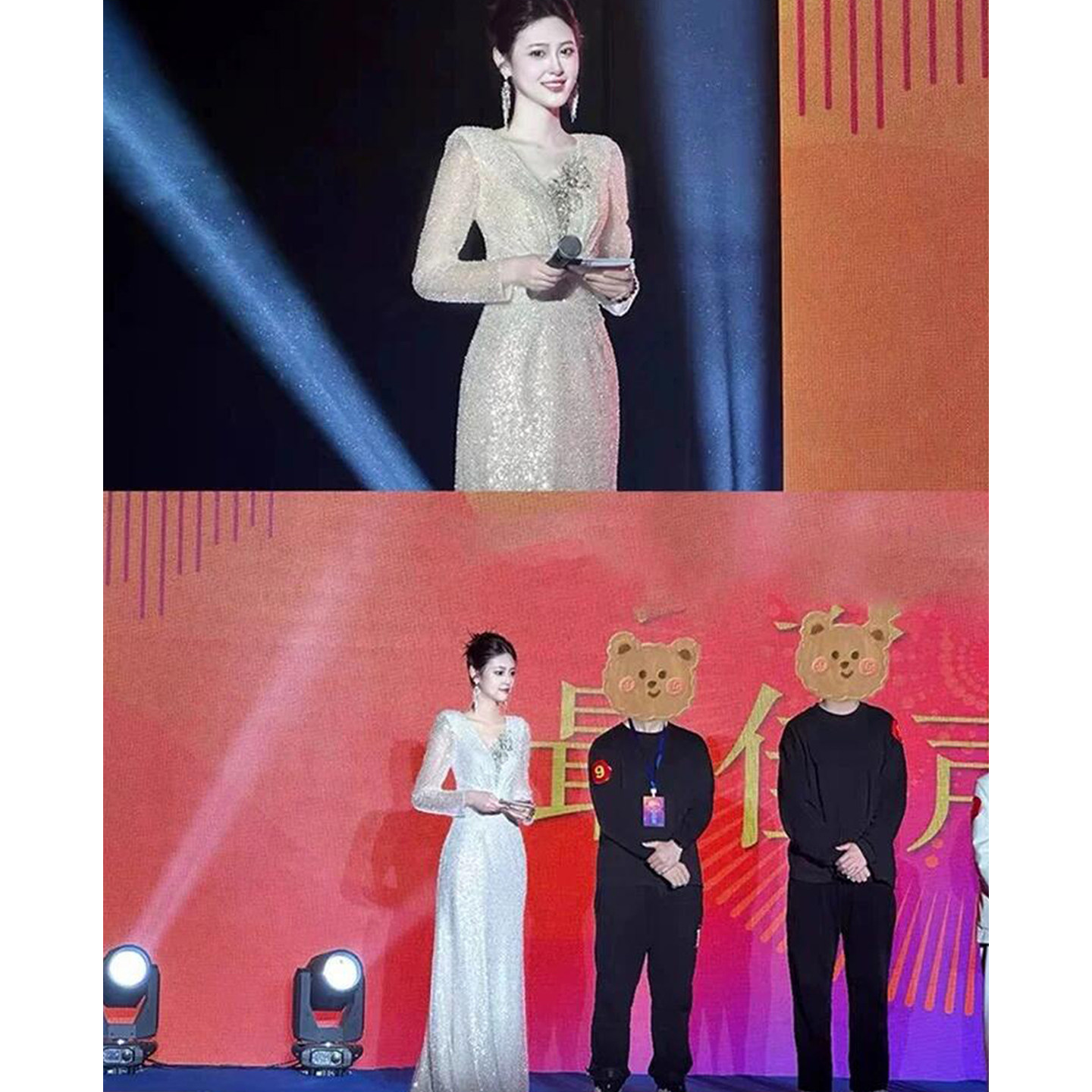 📚 年会主持人晚礼服2026新款高级感亮片爆闪宴会气质舞台大合唱长裙