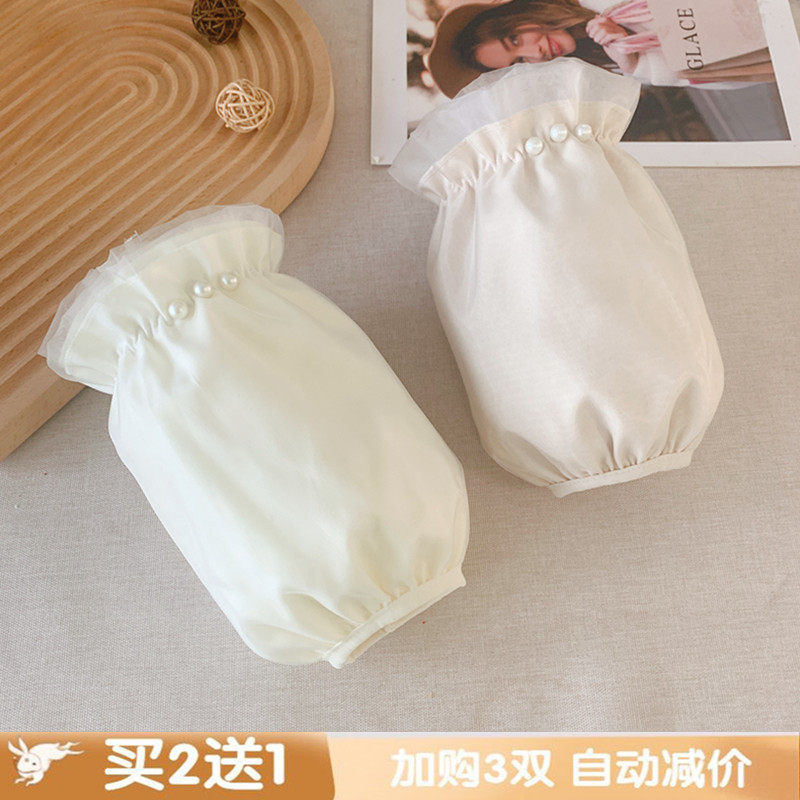 📚 2025米色袖套短款女秋冬羽绒服防脏护袖蕾丝白色套袖蓝色棉衣袖套