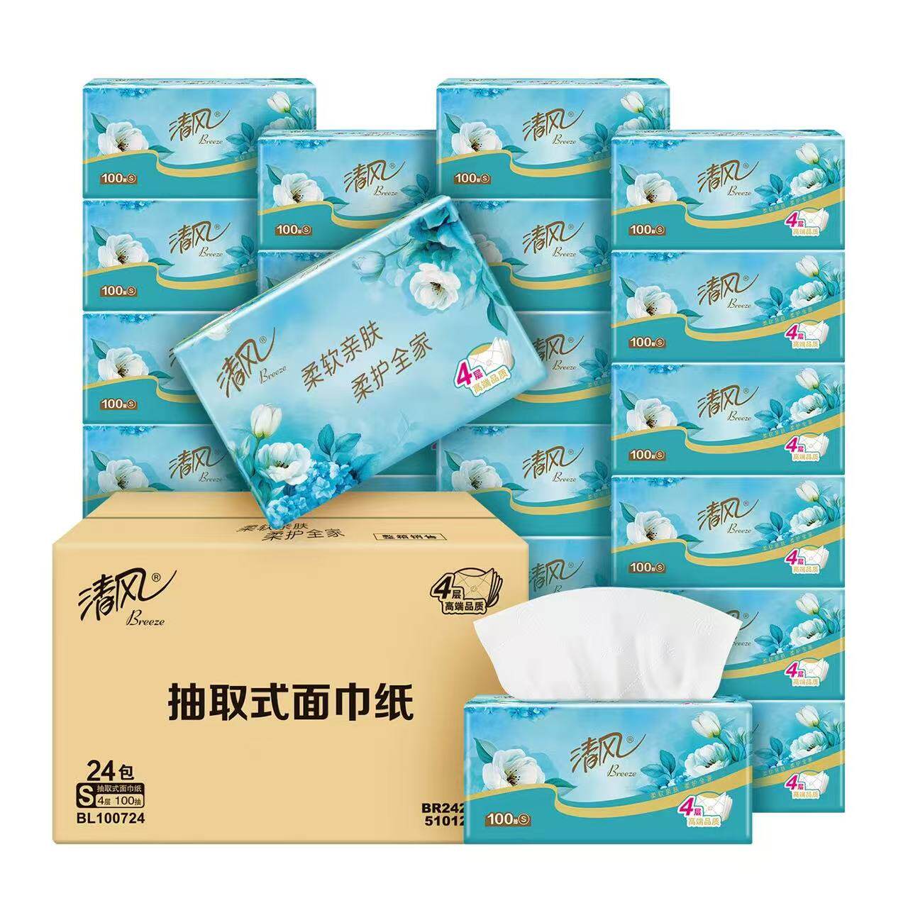 📚 清风抽纸纸巾4层大包餐巾纸卫生纸面巾纸攒纸1分钱一分购纸抽