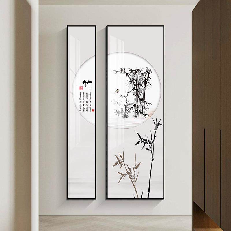 📚 式入户玄关装饰画走BRK廊过道新联中茶山水挂画办公室室两竖版墙
