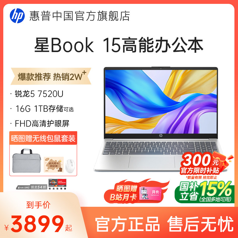 📚 【国家补贴15%】HP/惠普可选星Book 14/15锐龙 7000系处理器笔记本电脑轻薄学生办公本惠普