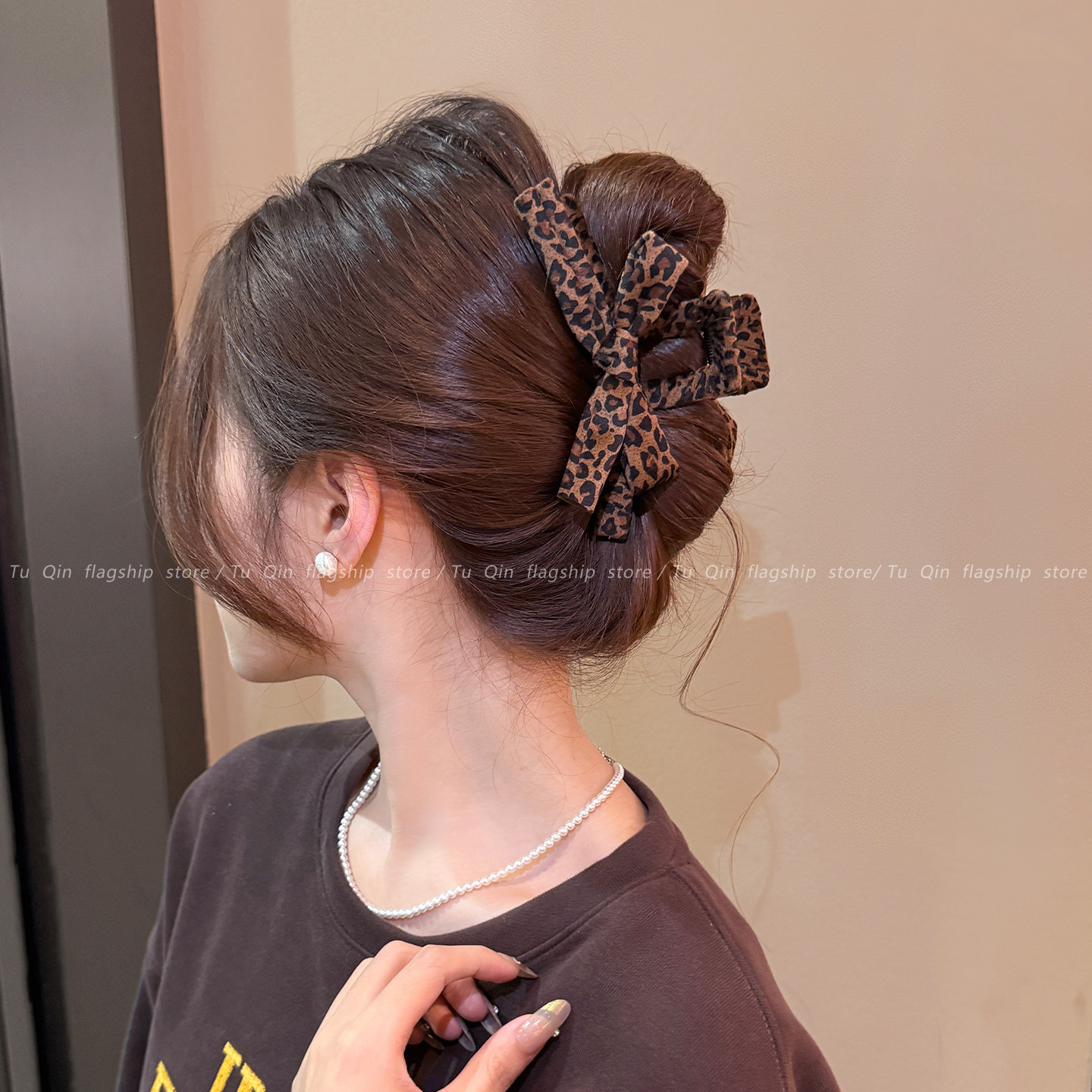 📚 复古豹纹蝴蝶结头发抓夹女高级感后发夹脑勺盘发鲨鱼夹发量大发卡