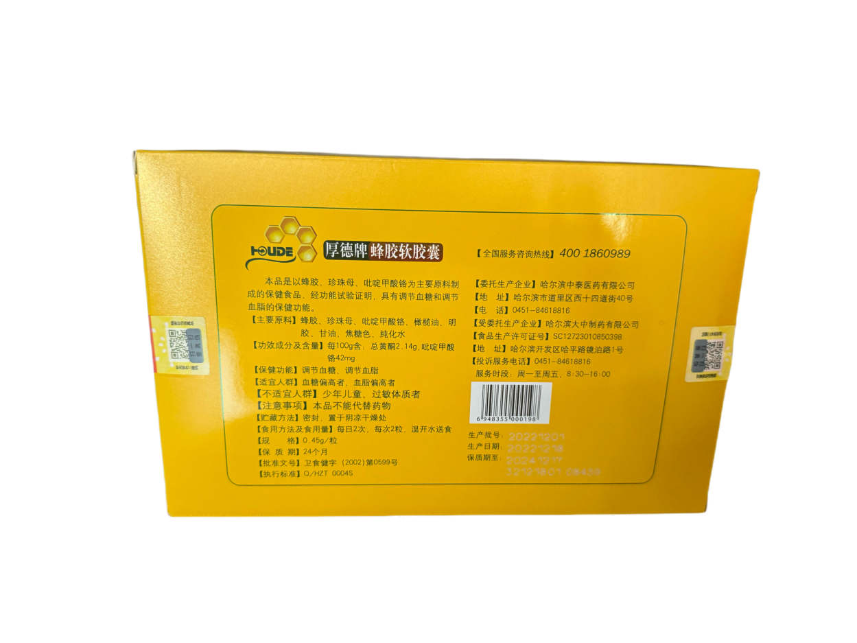 📚 厚德 牌蜂胶软胶囊 0.45g/粒*120粒/盒