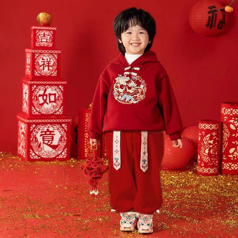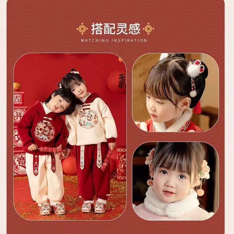 📚 男女童拜年服套装新款龙年汉服加绒儿童加厚唐装喜庆表演两件套