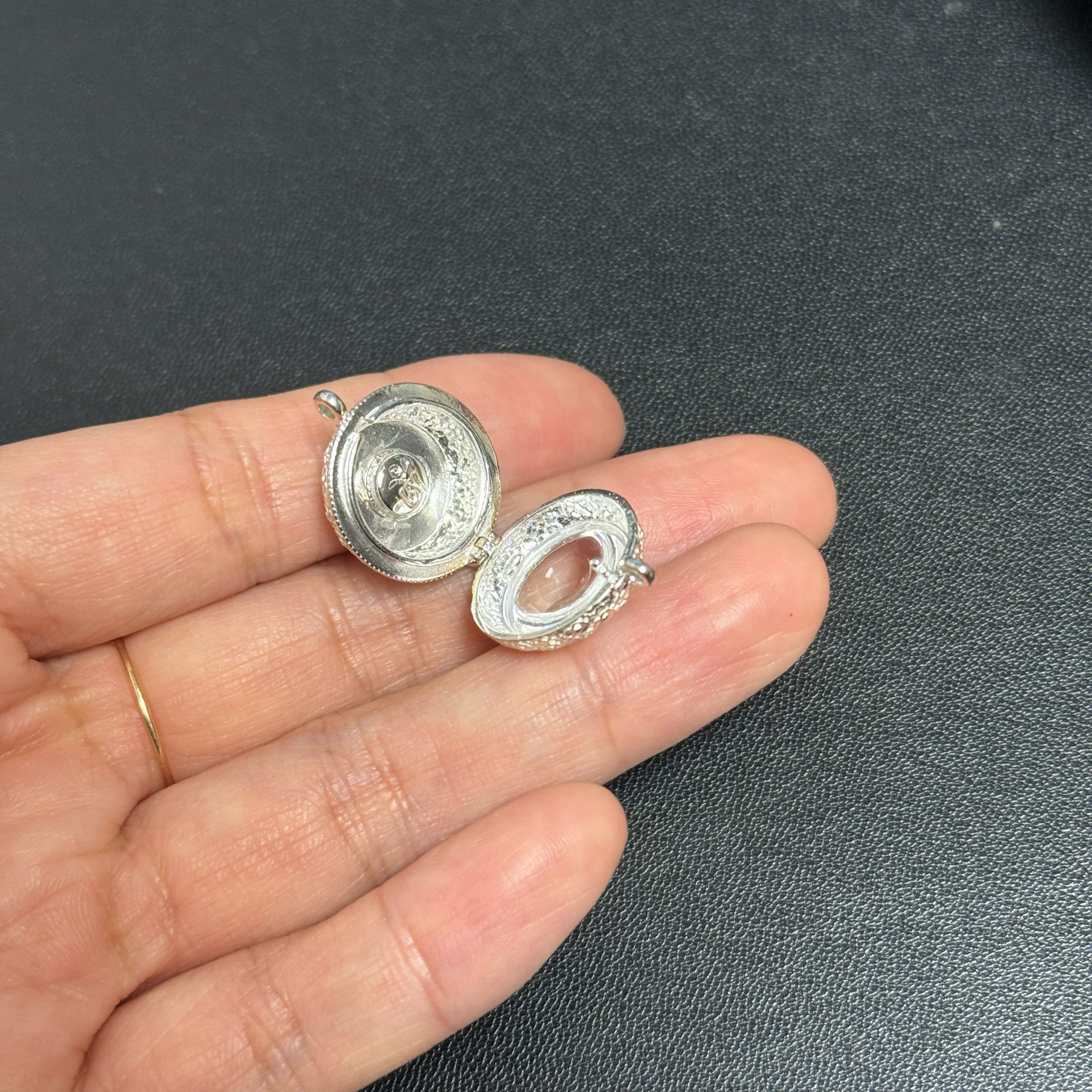 📚 纯银中间法轮可转动925 时来运转嘎乌盒吊坠透明吊坠藏式民族风盒