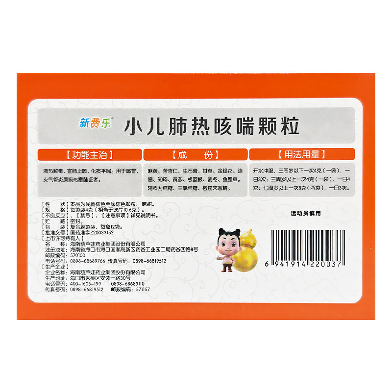 📚 新费乐葫芦娃小儿肺热咳喘颗粒4g*12袋/盒宣肺止咳化痰平喘感冒