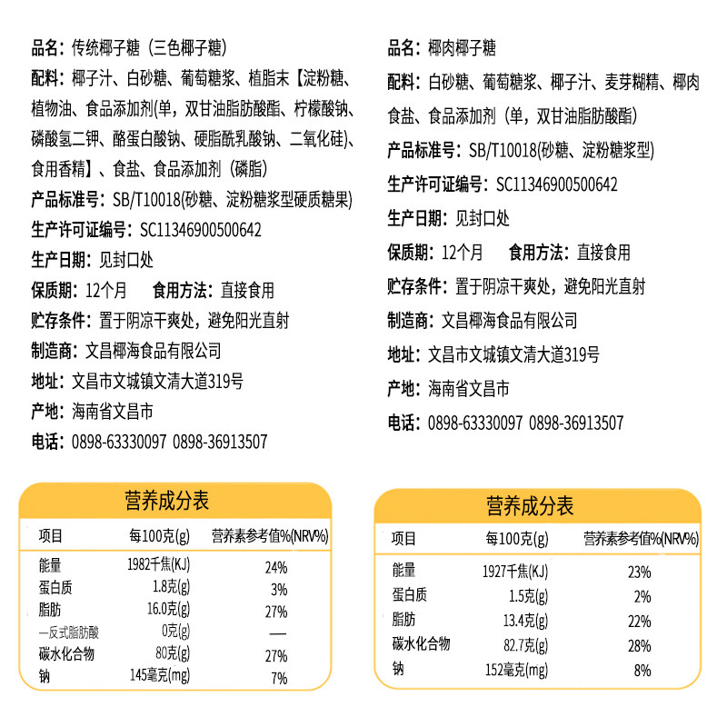 27¥ HU006 jZ0EUv22hS6¥ https://m.tb.cn/h.iW2d4oo 椰海椰肉椰子糖500g正宗海南特产传统特浓椰奶硬糖果喜糖老包装 --------------------- 【原售价】12元 【现售价】8.9元。