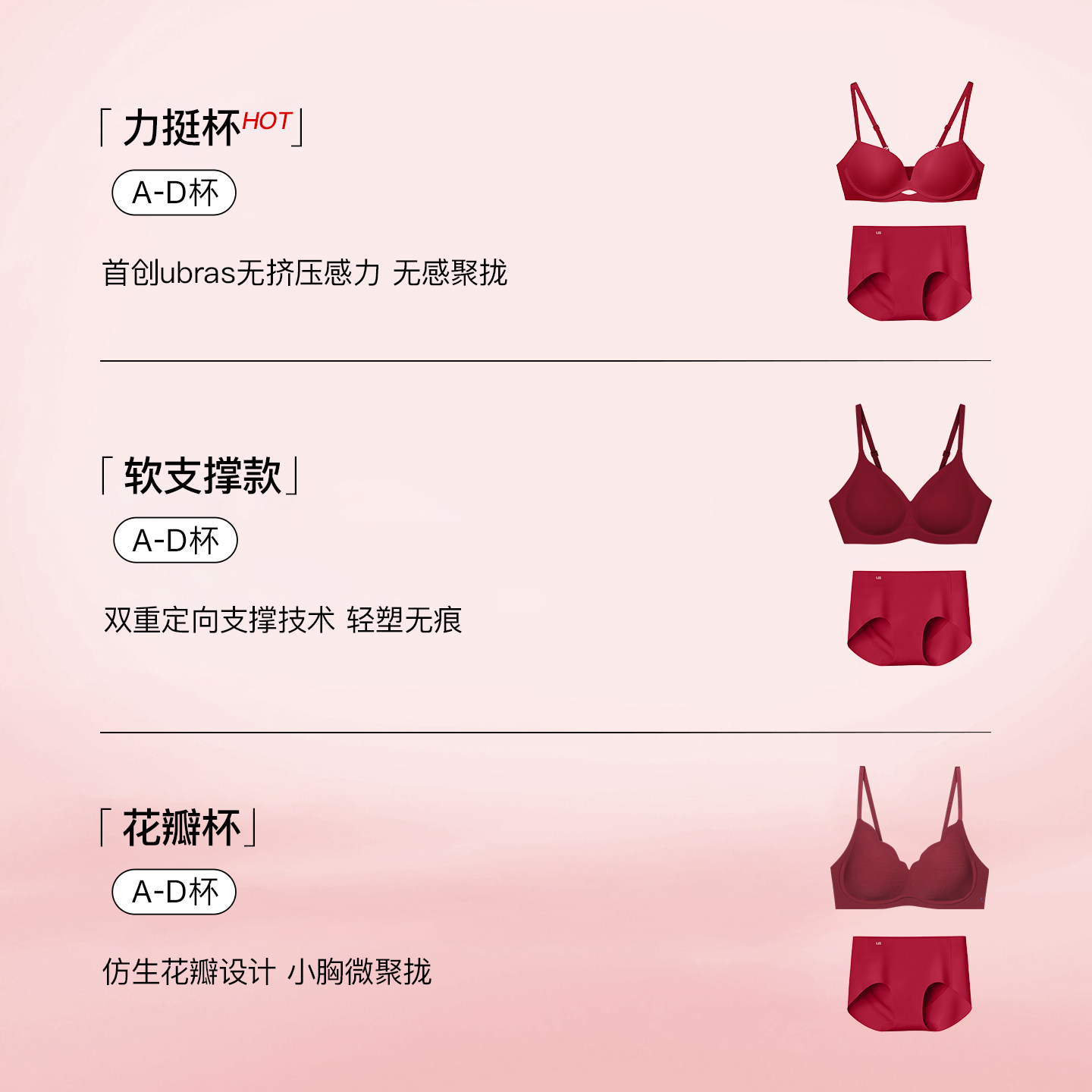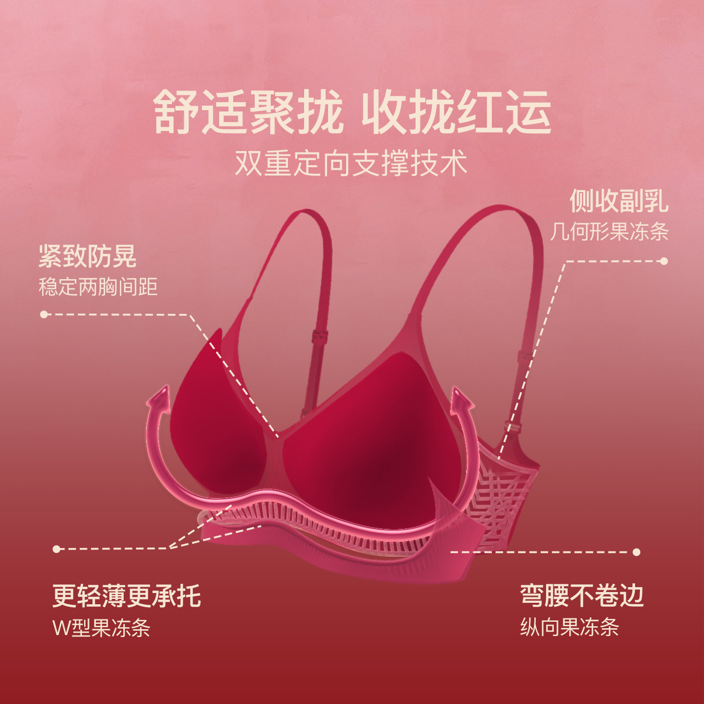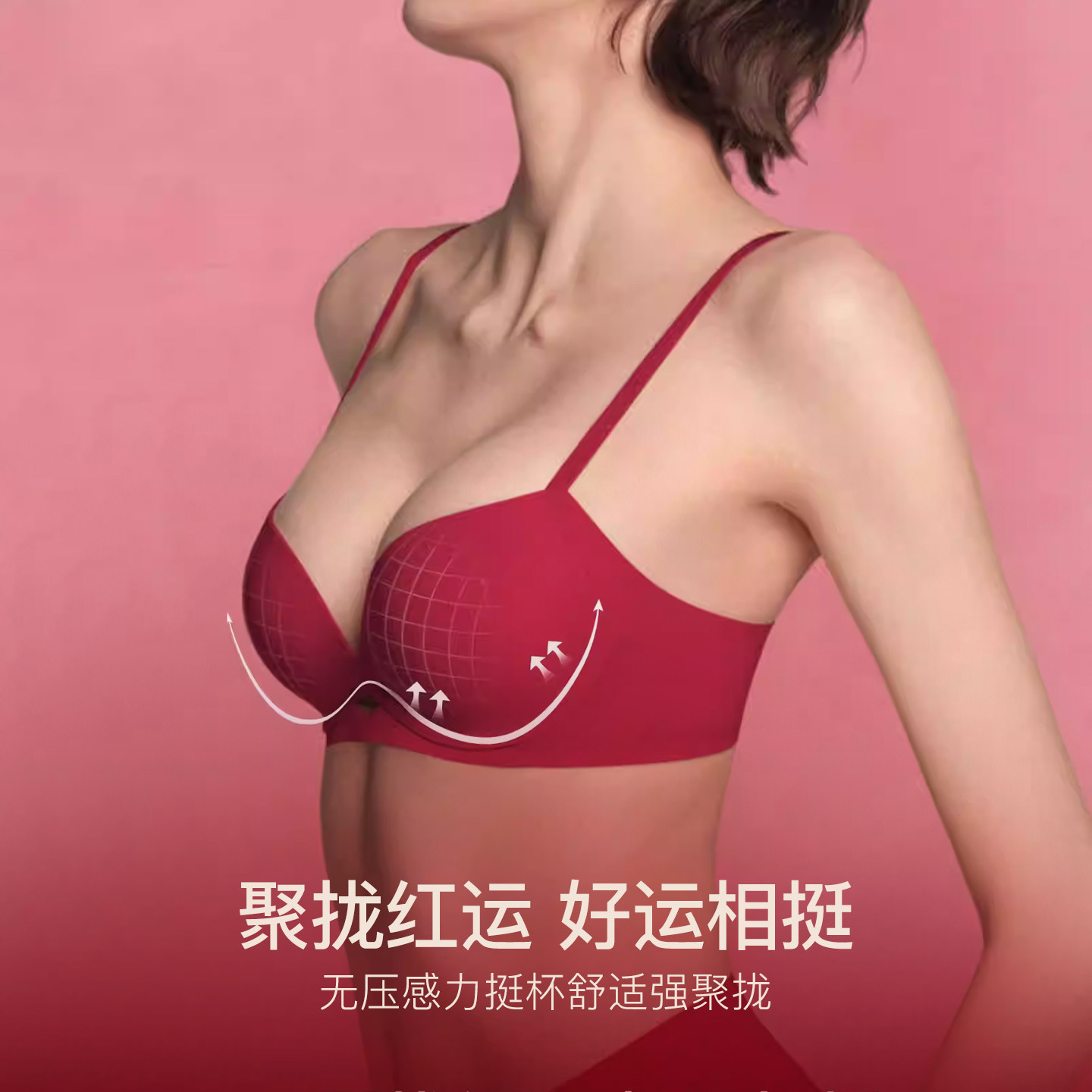 📚 ubras本命年内衣红色小胸聚拢无痕送礼盒节日婚礼文胸胸罩女