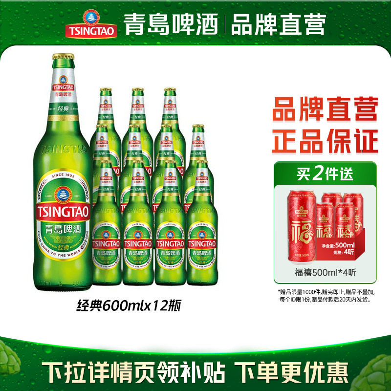 📚 青岛啤酒经典600ml*12瓶玻璃瓶装整箱包邮