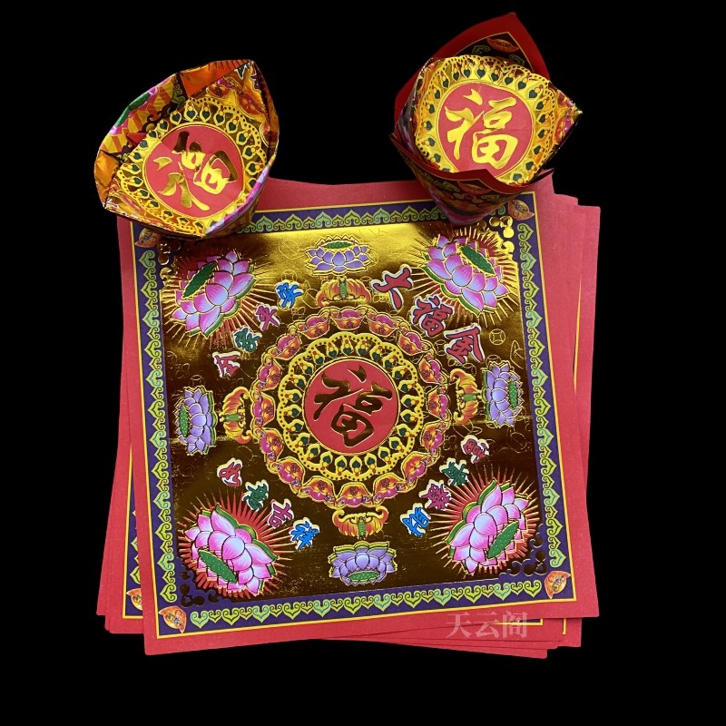 📚 正方形19×19厘米双面金大福金烫金折纸叠狗头金莲花元宝纸包邮