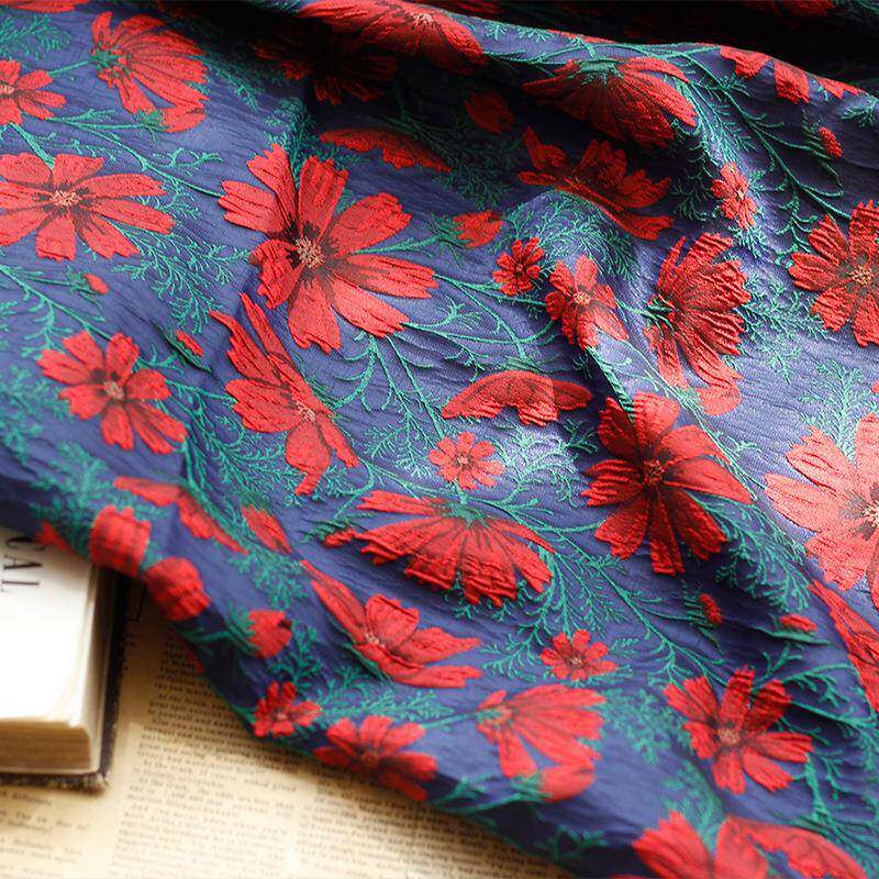 📚 暗红色织提花格浮BF-F1-27桑花面蓬蓬裙雕款料立体褶箱皱包织锦重