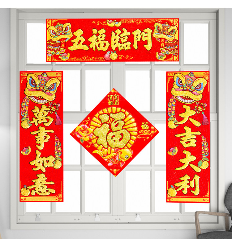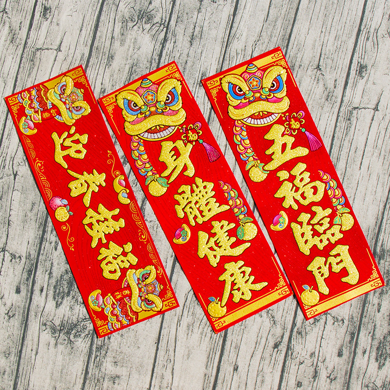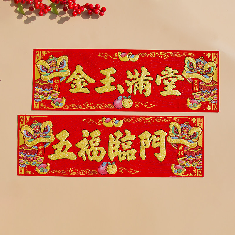 📚 新年春节横挥春出入平安横联横批绒布自粘创意醒狮装饰小对联门贴