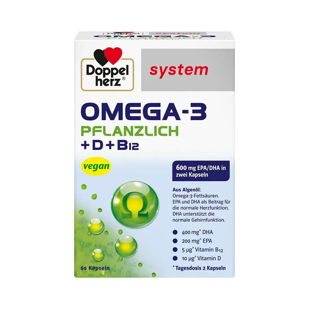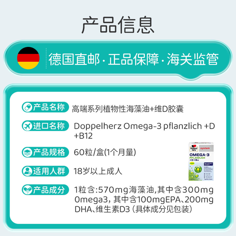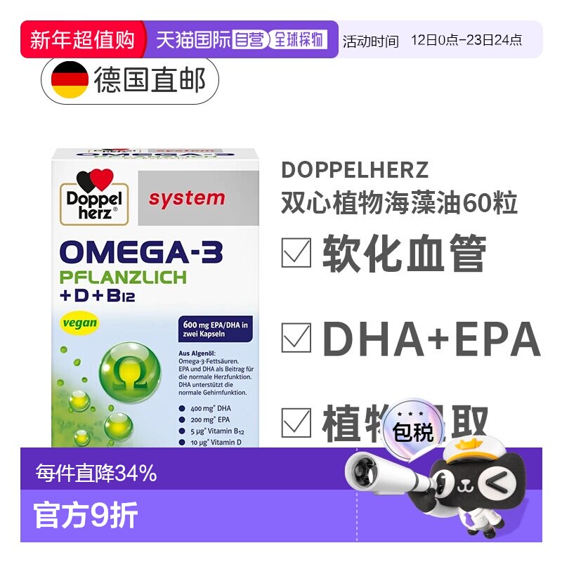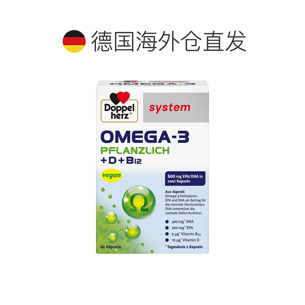 📚 欧洲直邮德国双心Omega3/DHA海藻油+维D胶囊增强身体抵抗力60粒