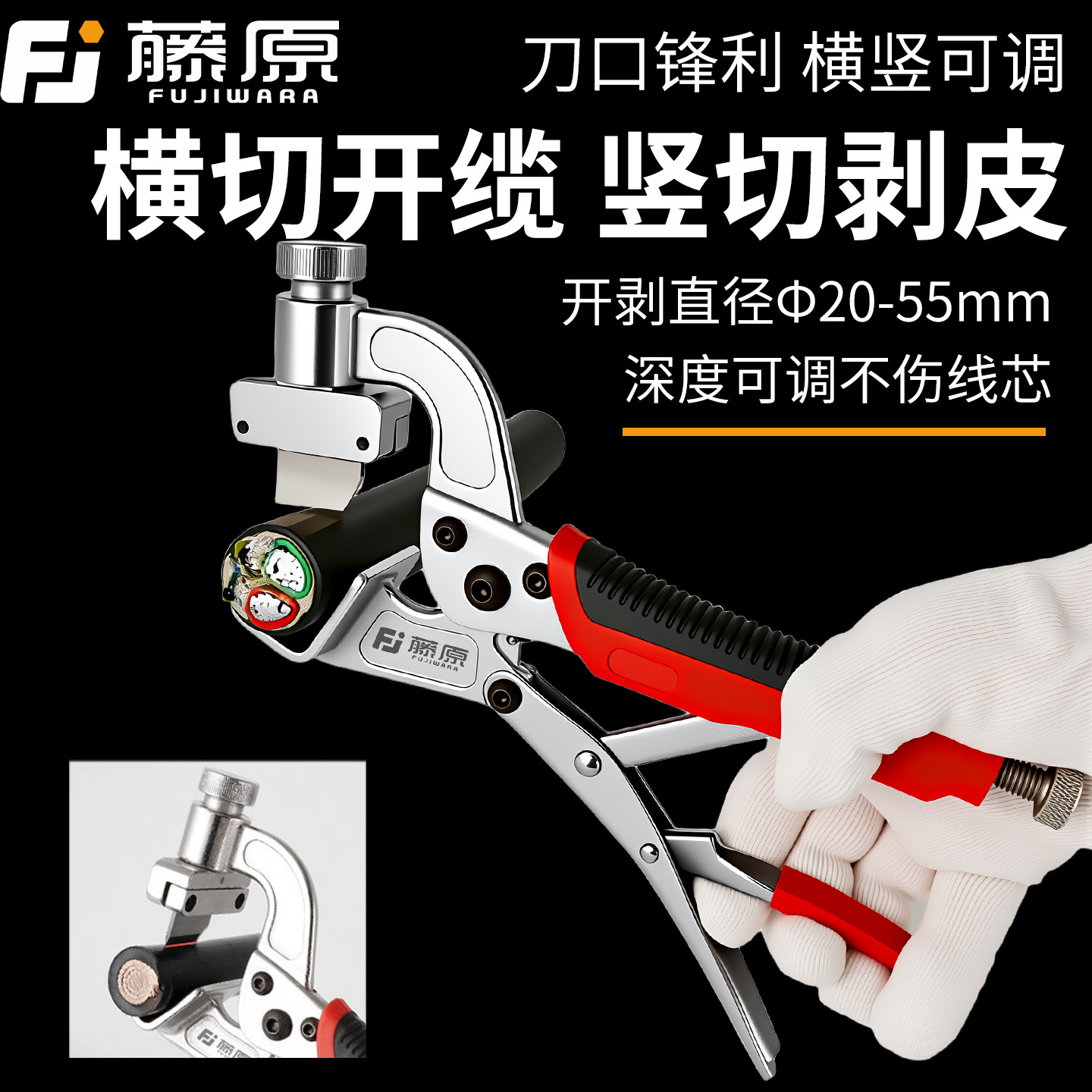 📚 藤原多功能高压电缆剥皮器剥皮刀旋切型剥皮钳剥线器可调节去皮器