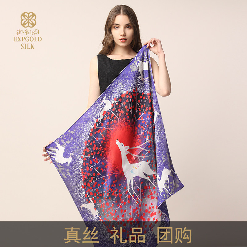 📚 御帛1851 原创真丝圣诞新品桑蚕丝九色鹿大方巾团购批发礼品