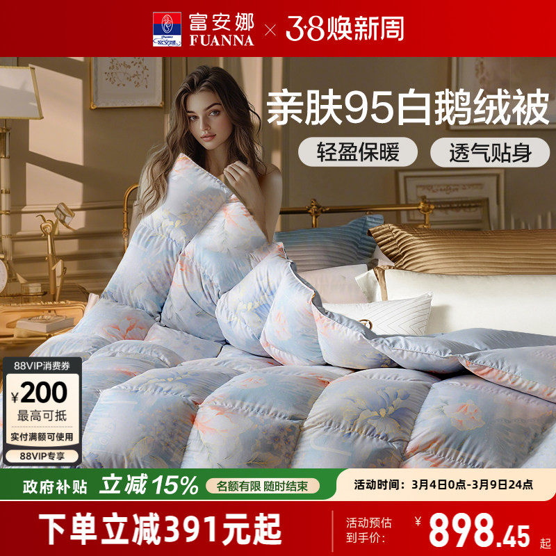 📚 富安娜被子95白鹅绒空调被二合一子母被春秋冬被四季结婚羽绒被芯