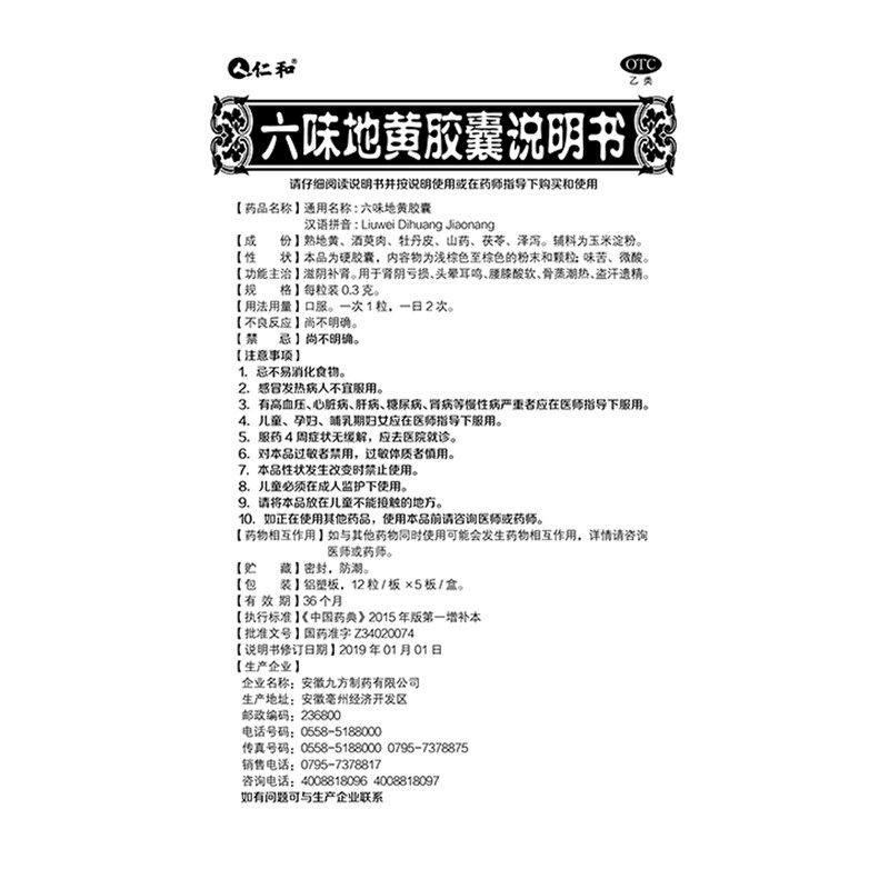 📚 仁和六味地黄胶囊0.3g*60粒/盒六味地丸滋阴补肾腰膝酸软盗汗遗精