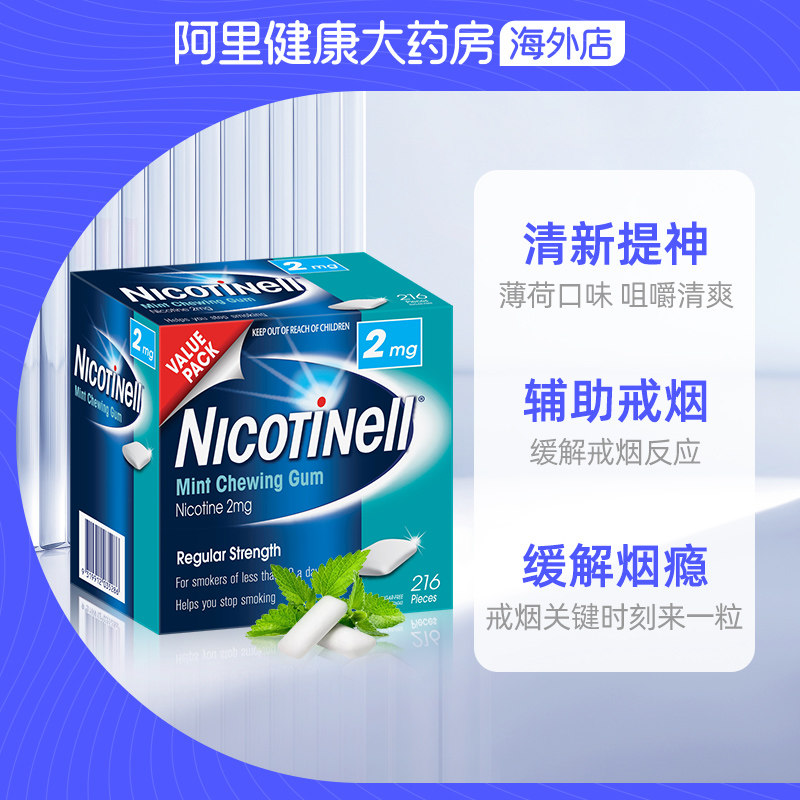 📚 澳洲Nicotinell诺华尼古丁戒烟口香糖薄荷味2毫克216粒戒烟咀嚼片