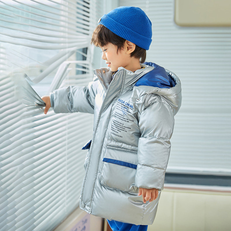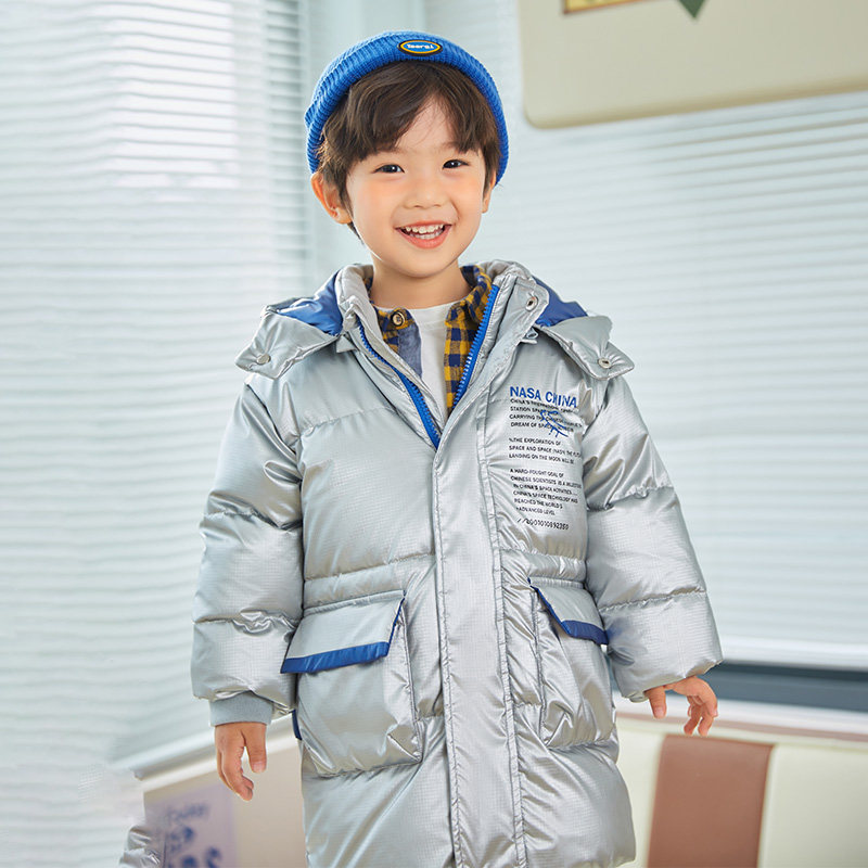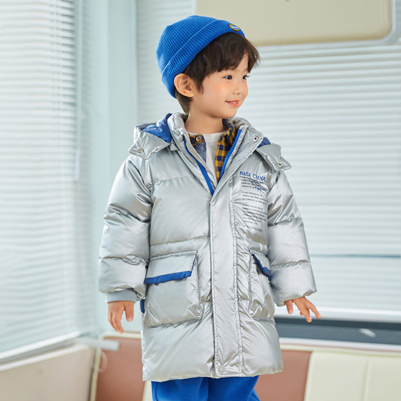 📚 YUYBEIB儿童中长款羽绒服男童免洗亮面太空人加厚潮