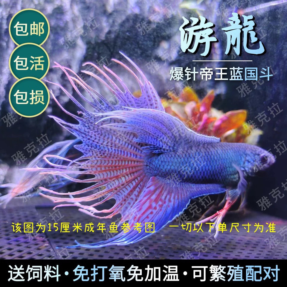 📚 中国斗鱼游龙无纹蓝帝王蓝活体活鱼淡水冷水耐养好养免加温小金鱼