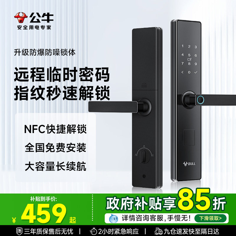 📚 公牛家用防盗门指纹锁密码锁智能门锁半自动智能锁电子门锁Z08