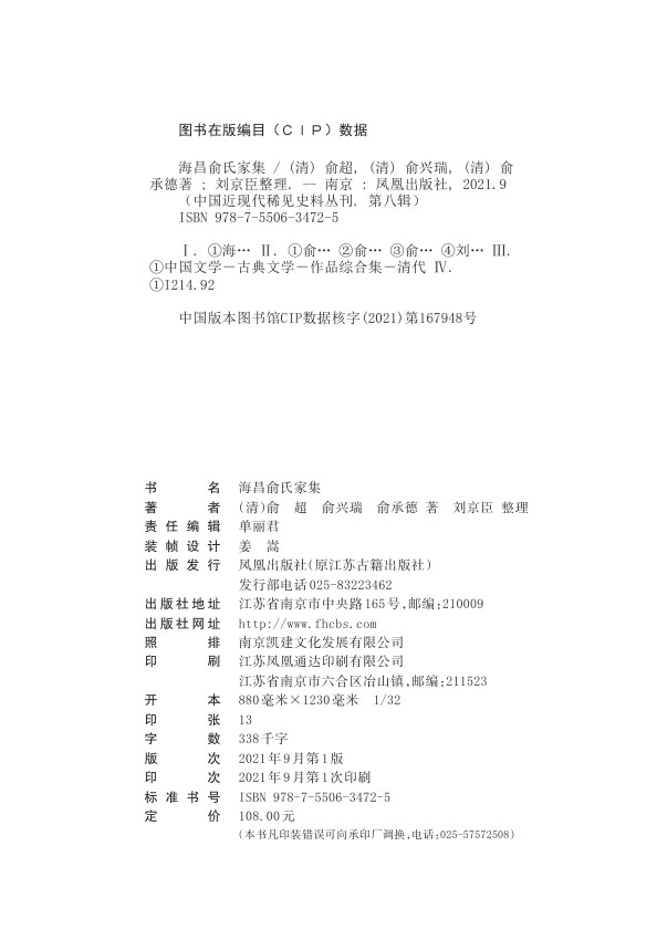 📚 海昌俞氏家集 中国近现代稀见史料丛刊(第八辑)(清)俞超、俞兴瑞、俞承德著 刘京臣整理 海昌俞氏家族祖孙三人作品集